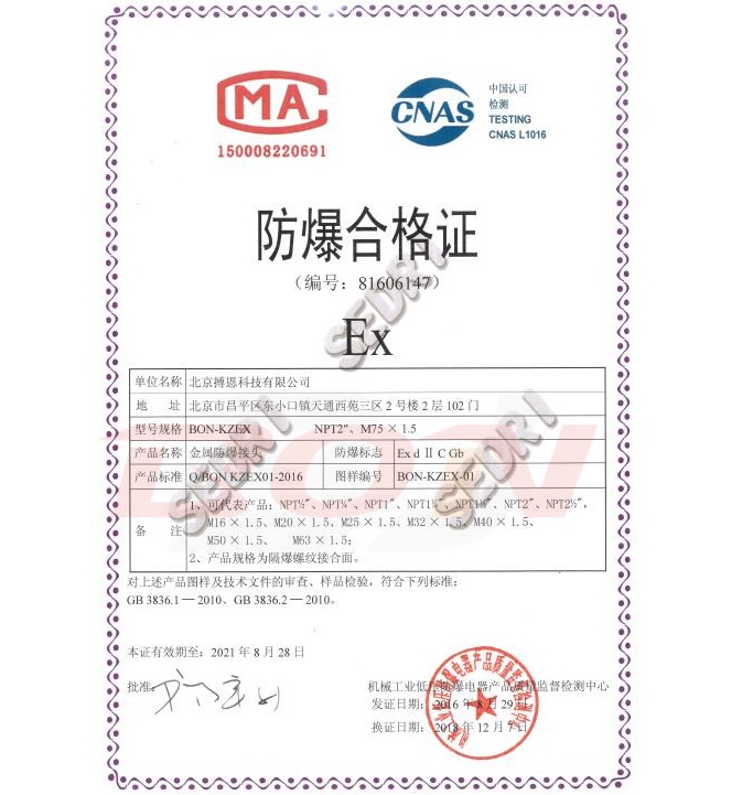 防爆合格證Exd隔爆接頭型證書